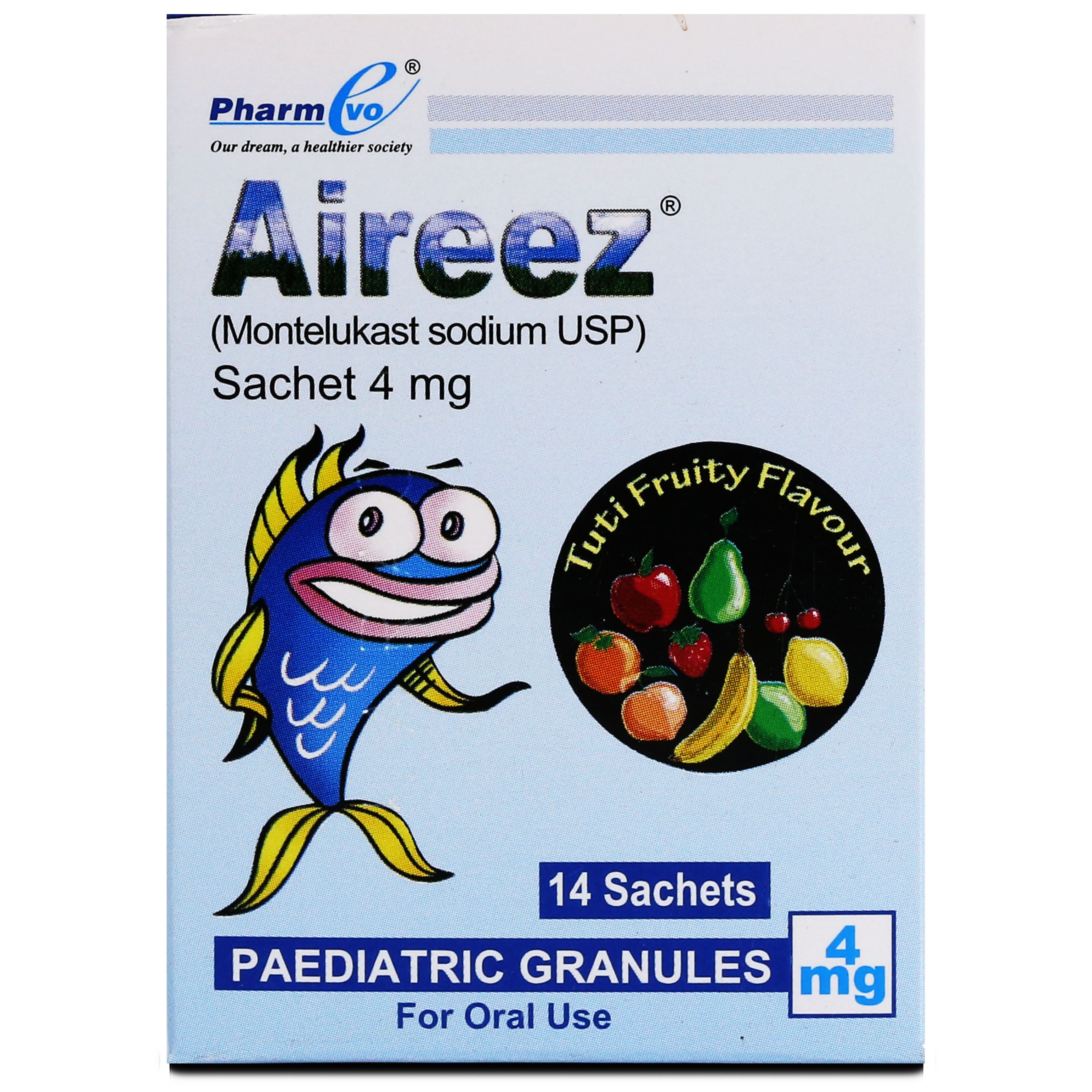 - Aireez 4mg Sachet 1 ‘S(14) is commonly prescribed for pediatric (for toddlers and children) use
