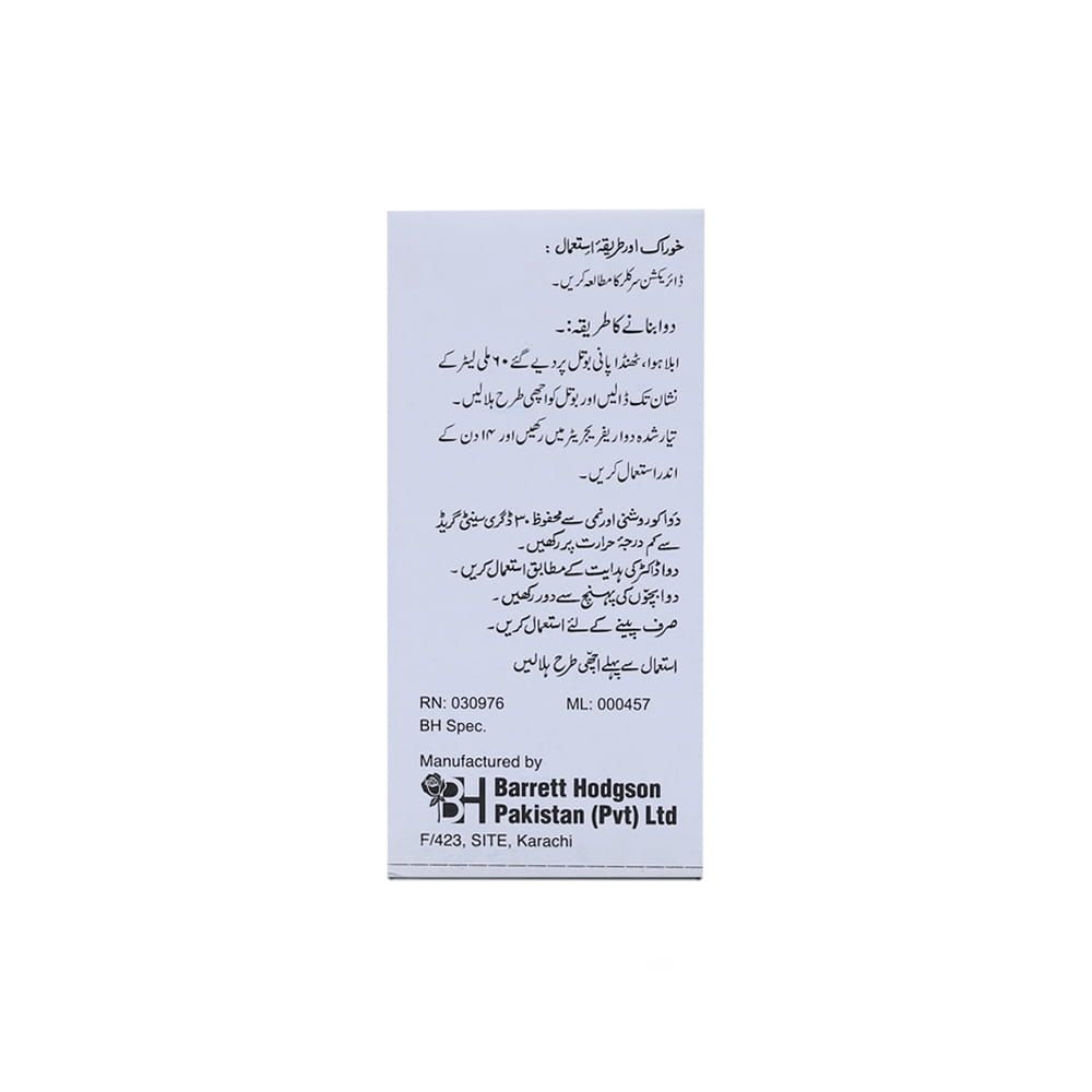 Cavalor 125mg/5ml Suspension 60 ml is available on prescription, in the form of oral suspension. Dosage of Cavalor 125mg/5ml Suspension 60 ml depends on age, weight, patient’s response to the medicine, and their comorbidities. Cavalor 125mg/5ml Suspension 60 ml is taken orally with or without food in prescribed dosage (usually 8-12 hourly) depending upon the severity of infection and kidney function. Drug dose regimen must be strictly followed without skipping to avoid bacterial resistance. Common side effects of this medication are nausea, diarrhea, and indigestion (stomach ache).