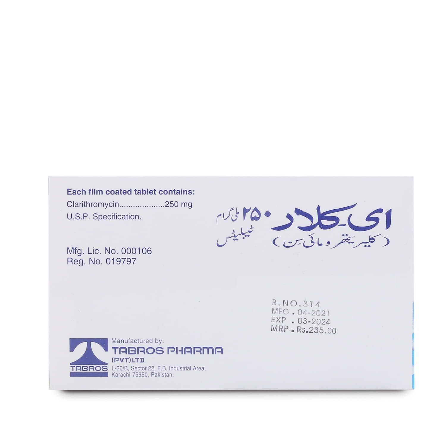 E-Clar 125mg/5ml Suspension 60 ml is available on prescription, as tablets, granules or a liquid that you drink. At times it is also given as an injection, but this is done in the hospital. It works by preventing bacteria from synthesising essential proteins required to carry out vital functions. Thus, stopping bacterial growth and preventing the spread of infection.