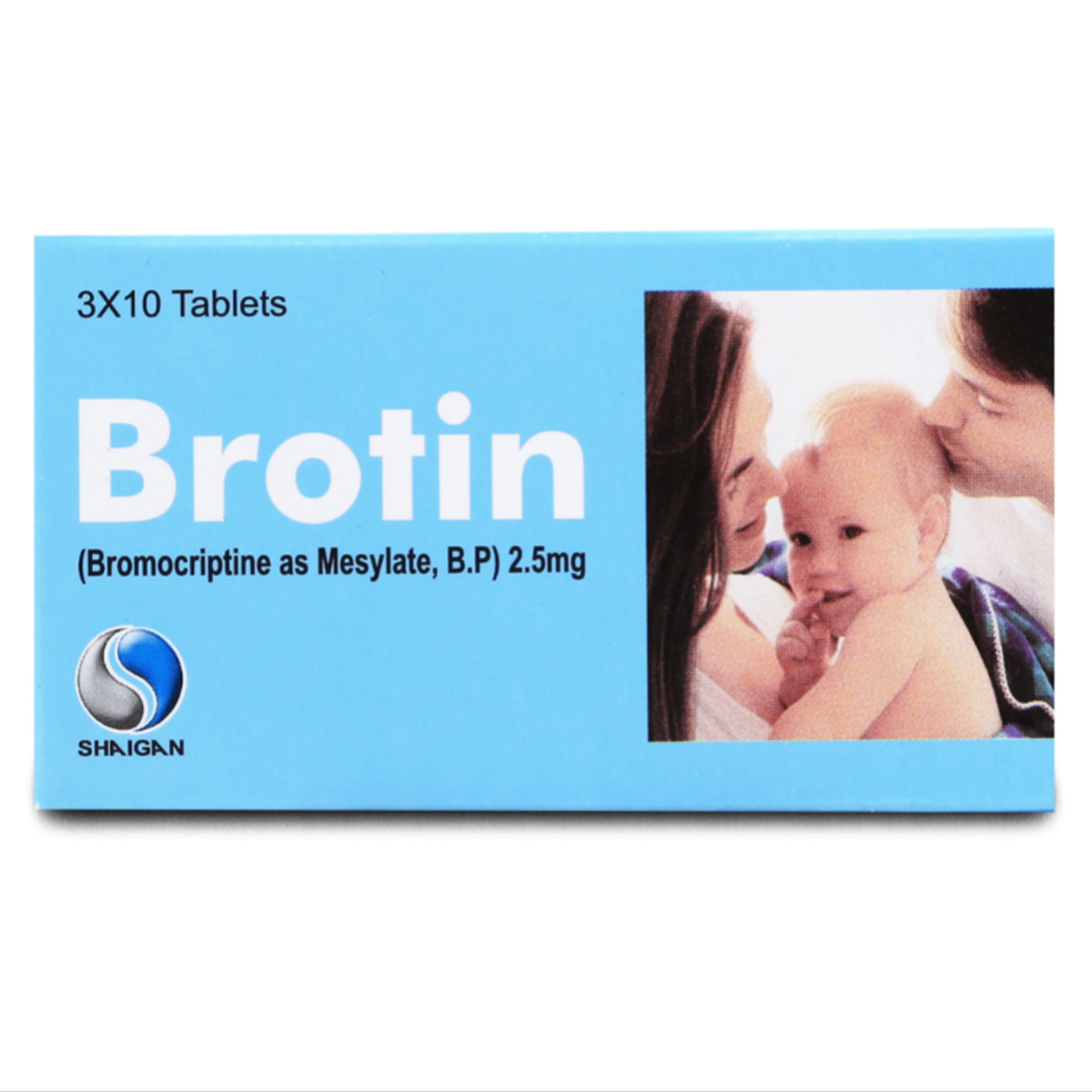 - Brotin 2.5mg Tablet 10 ‘S is prescribed for the treatment of parkinson’s disease,to regulate fertility in women and acromegaly