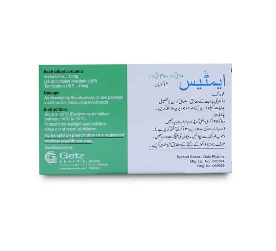 | Composition | Amplodipine 10 mg + Telmisartan 40 mg |
