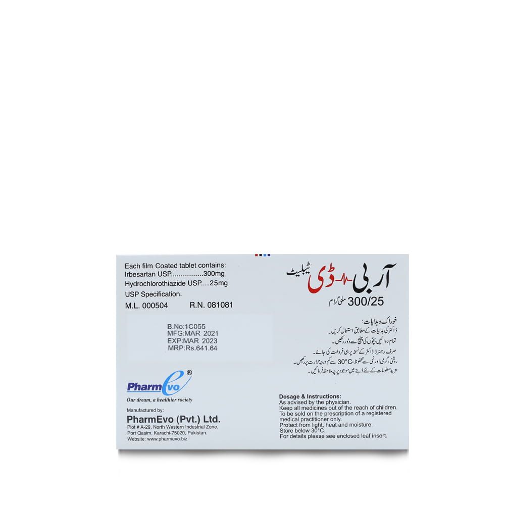 - Arbi D 300mg/25mg Tablet 14 ‘S is prescribed when treatment with either angiotensin II blockers alone or with a diuretic alone isn’t effective in treating high blood pressure.
