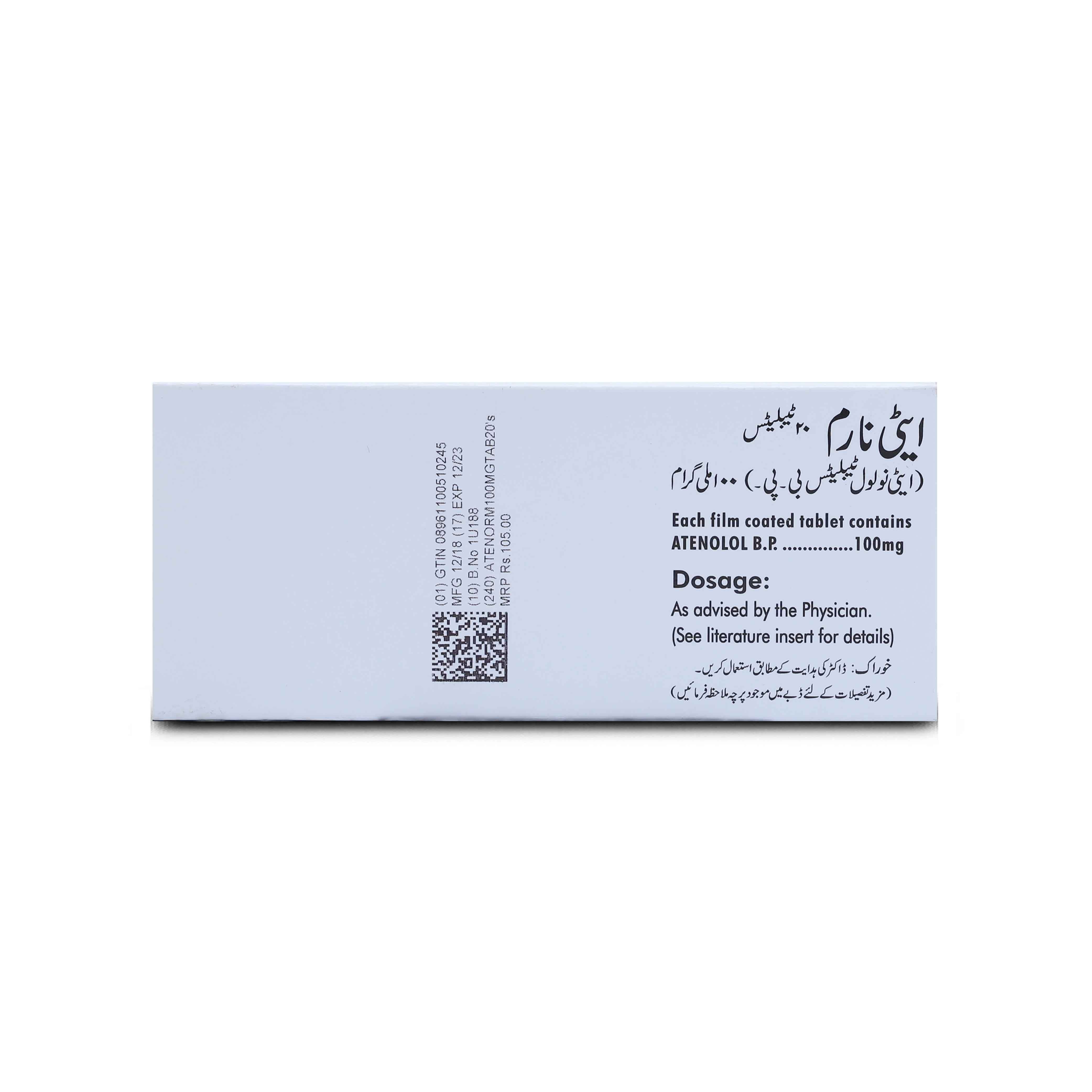 • Atenorm 100mg Tablet 10 ‘S is prescribed for the treatment of Hypertension (high blood pressure)
