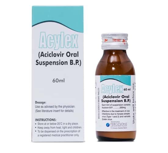 - Acylex 200mg/5ml Suspension 60 ml contains Acyclovir (an antiviral agent)