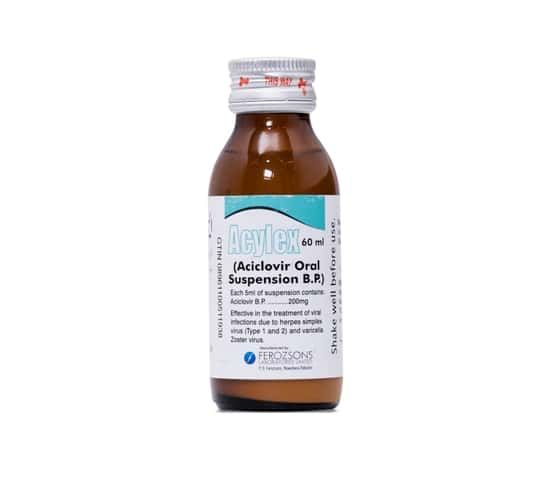 - Acylex 200mg/5ml Suspension 60 ml is prescribed to be taken once or twice daily