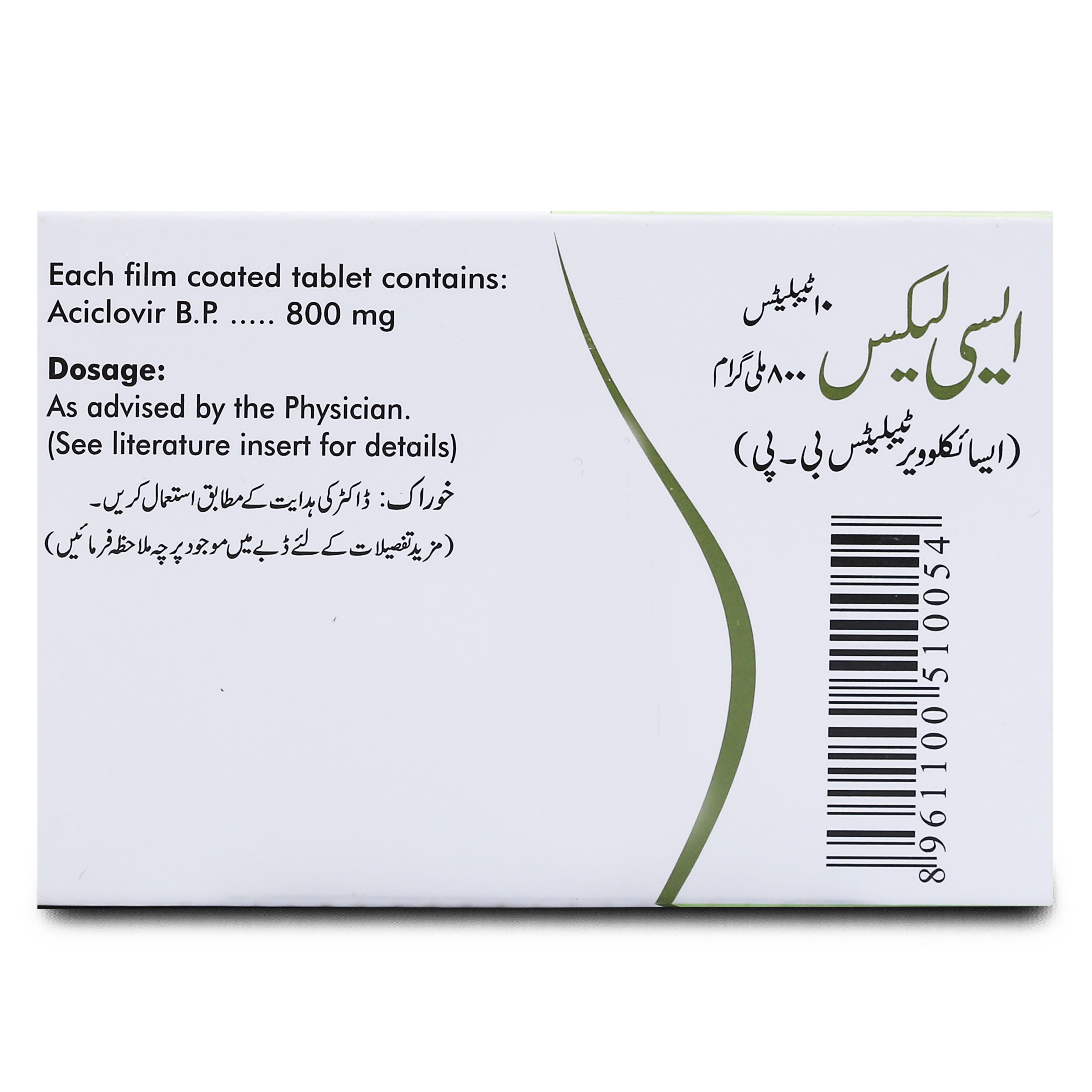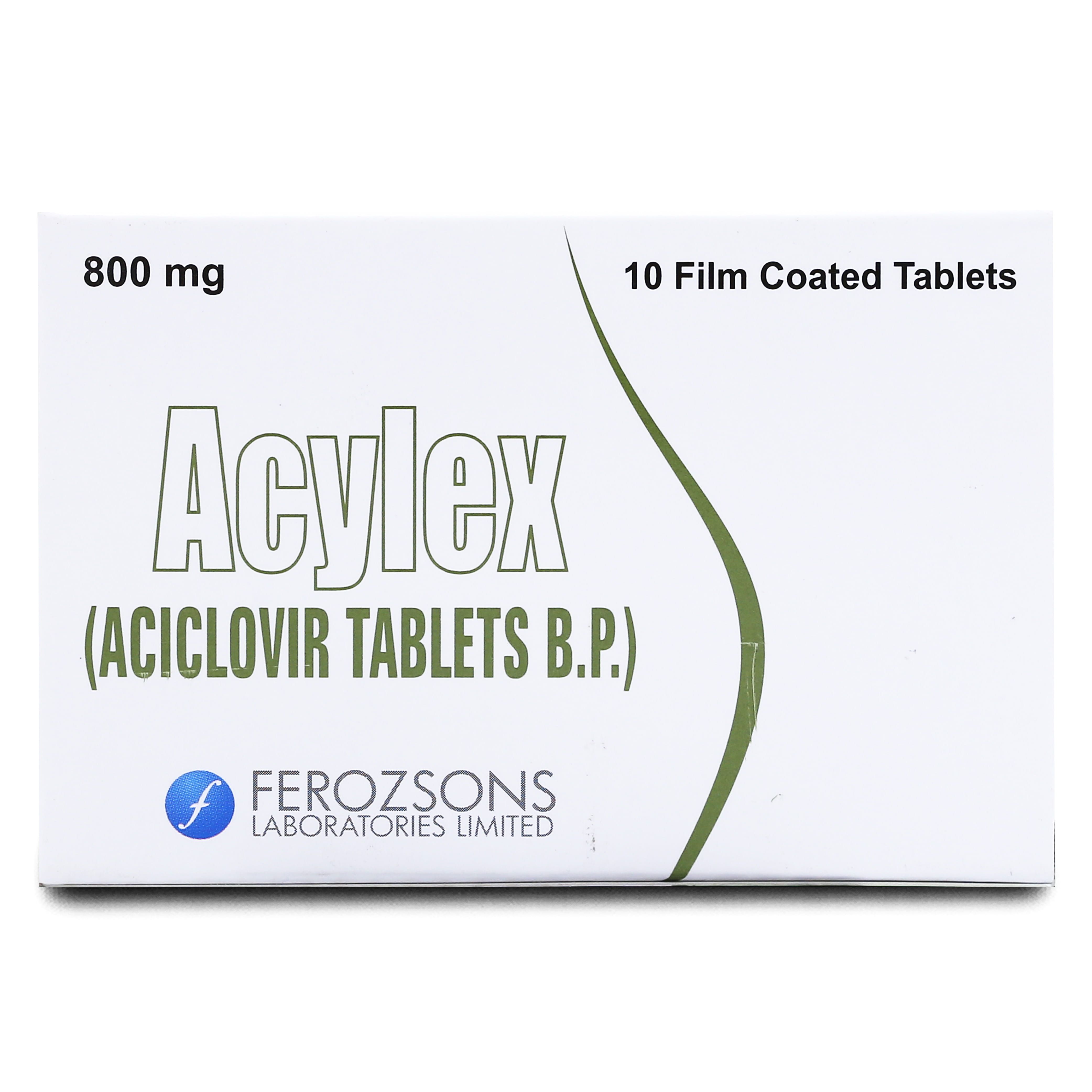 - Acylex 800mg Tablet 10 ‘S is prescribed for the treatment of herpes, shingles, chicken pox, and similar viral illnesses