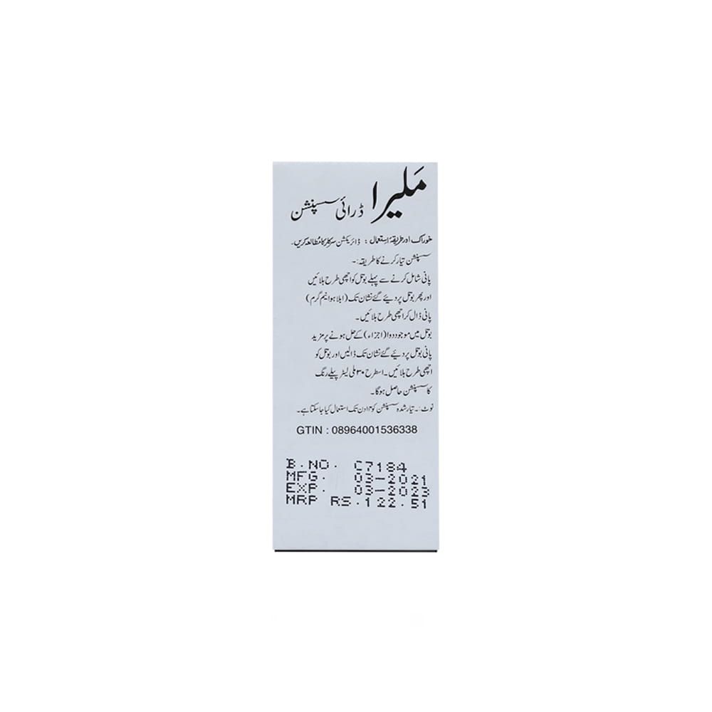 - Malera Dry 15mg+90mg Suspension 30 ml is used to treat malaria