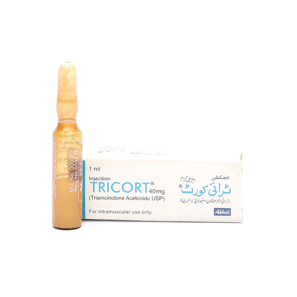 - Tricort 40mg Injection 1 ml contains Triamcinolone Acetonide as active ingredients.