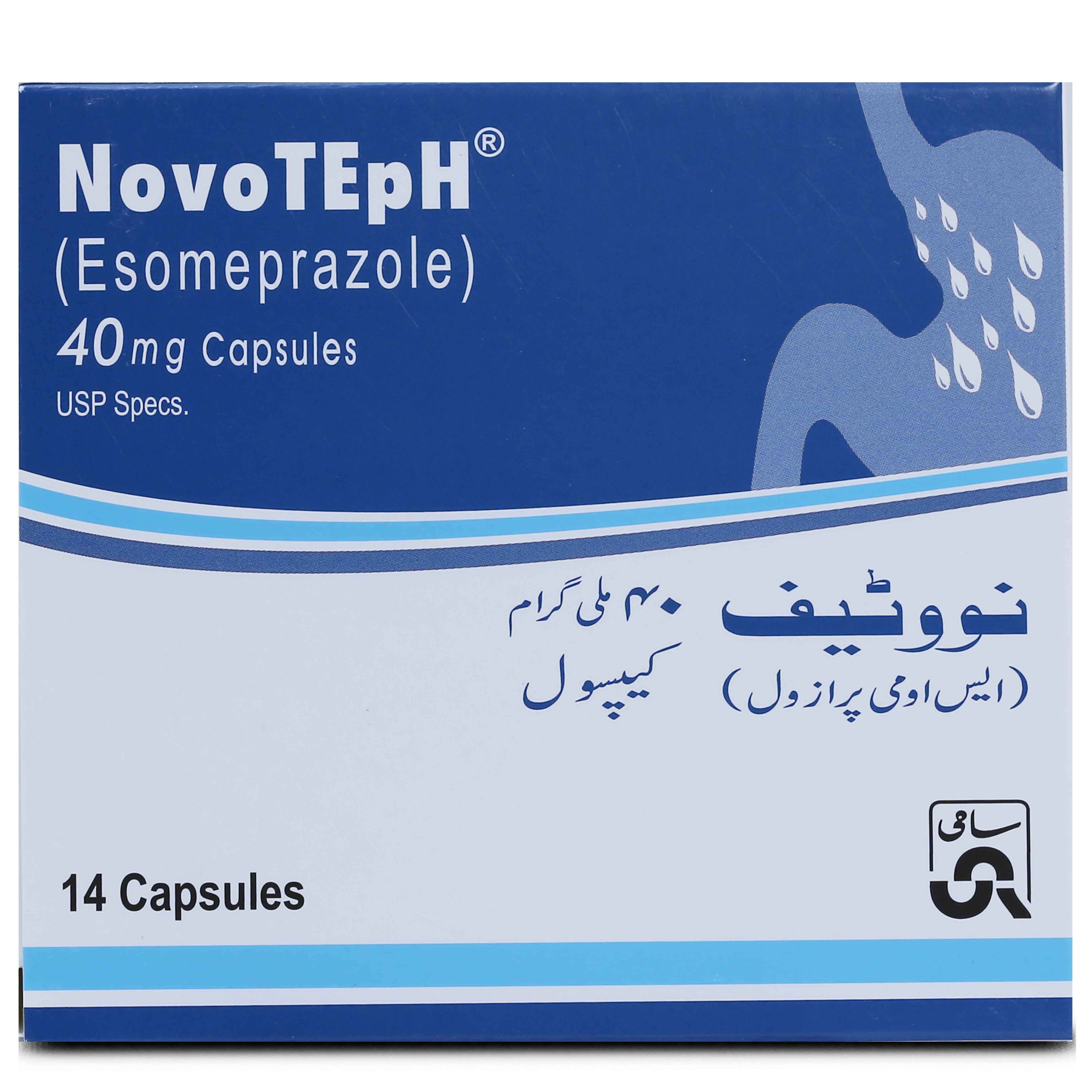 - Novoteph 40mg Capsule 14 ‘S is commonly used to help fight acid reflux and heartburn